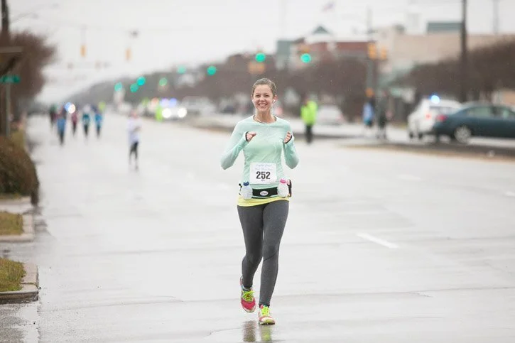 A few weeks ago when I was at the most intense part of my training, I got bronchitis. I had just finished my 9 mile run, and I still had several long runs left to go – including the 10-miler that was my last long run before the race. Instead of training, I was weak as a dog, on my couch with a terrible cough and no voice! I was so discouraged. I did get out and force myself to run 2.5 miles when I had bronchitis, which I immediately regretted. I needed to rest and recover, which was really, really hard to do knowing this race was only weeks away! I gave up on my goals of beating my personal record and running the whole time, because I didn’t believe I could do it. I didn’t even know if I could run in the race.