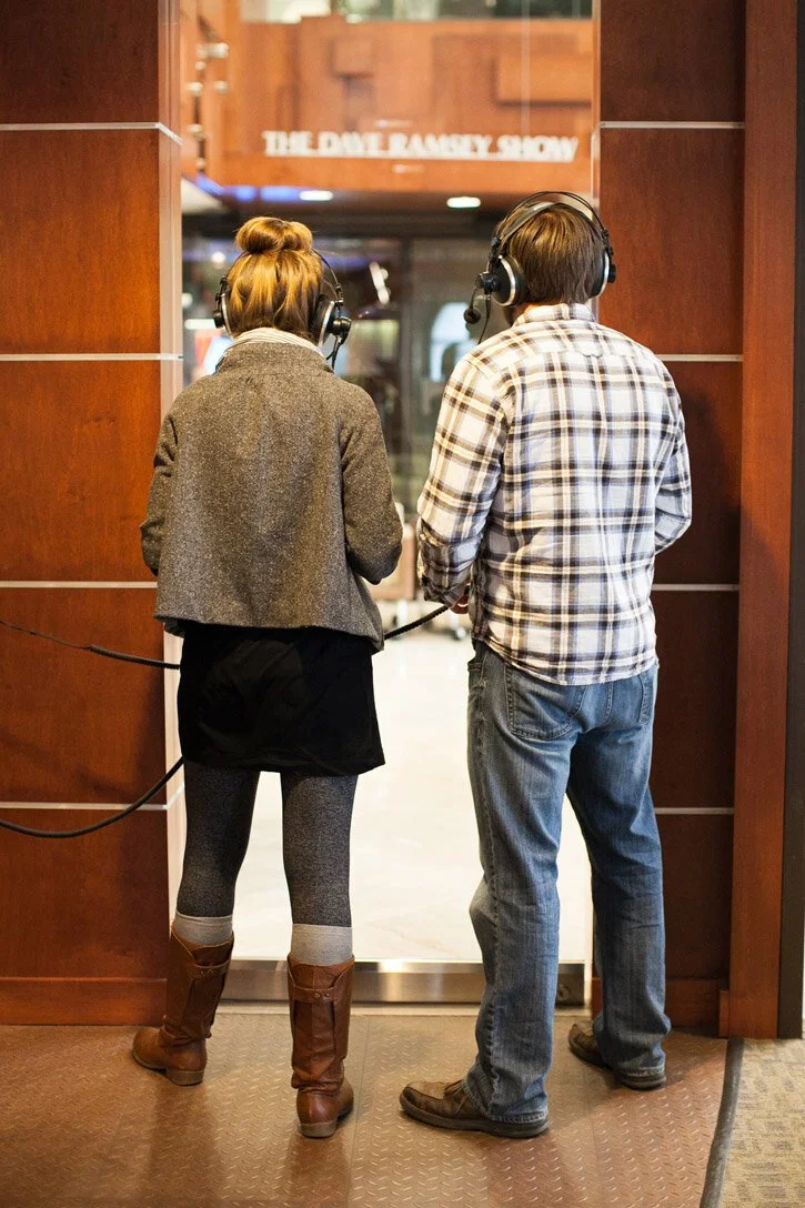 We walked inside and greeted Martha, the sweet director of guest relations who also runs a complimentary coffee shop & bakery in the lobby. (Yep, pretty awesome.) She asked about our story, our debt, and she immediately got so excited! She said she was so proud of us, and Dave was going to love our story. We walked around, and Will’s family shortly arrived after that: Liz (mom), Jess (sister), John (brother) & Sam (my bff/John’s wife). We waited, we watched Dave begin the show, and before we knew it, we were putting on our headsets and microphones.