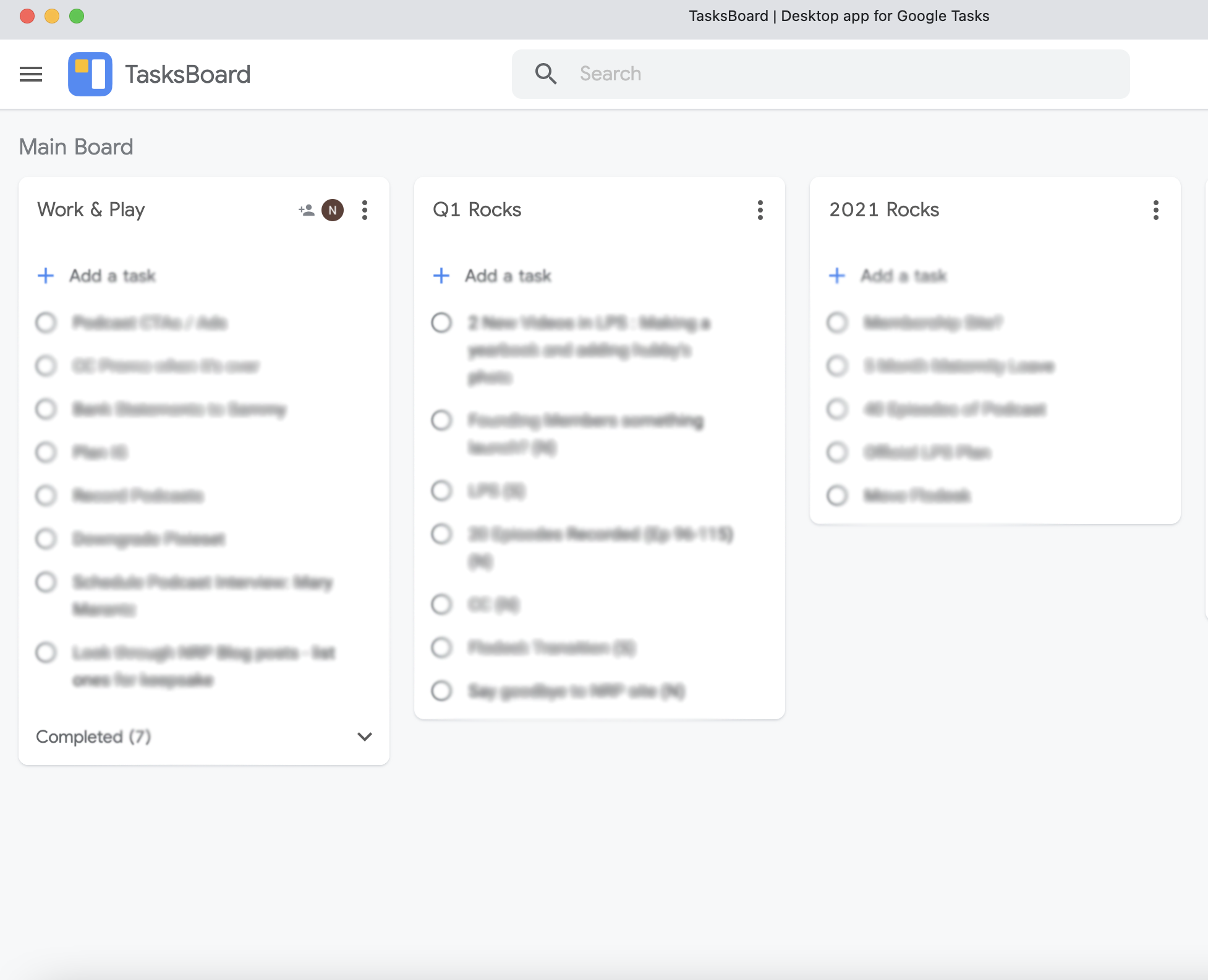 I'm also using for the first time TasksBoard, which is basically Google Tasks. And it's a really great app that is very simplified, and you can share the list with somebody you work with, which is what I do in my work, so that we can kind of follow along the same things. And for me, it's a place where I put those quarterly rocks so that I can constantly look back at them, and then I also will put different tasks that I need to accomplish in my work so that I know as soon as I sit down to work, I know the things that I need to focus on are the things that need my attention.