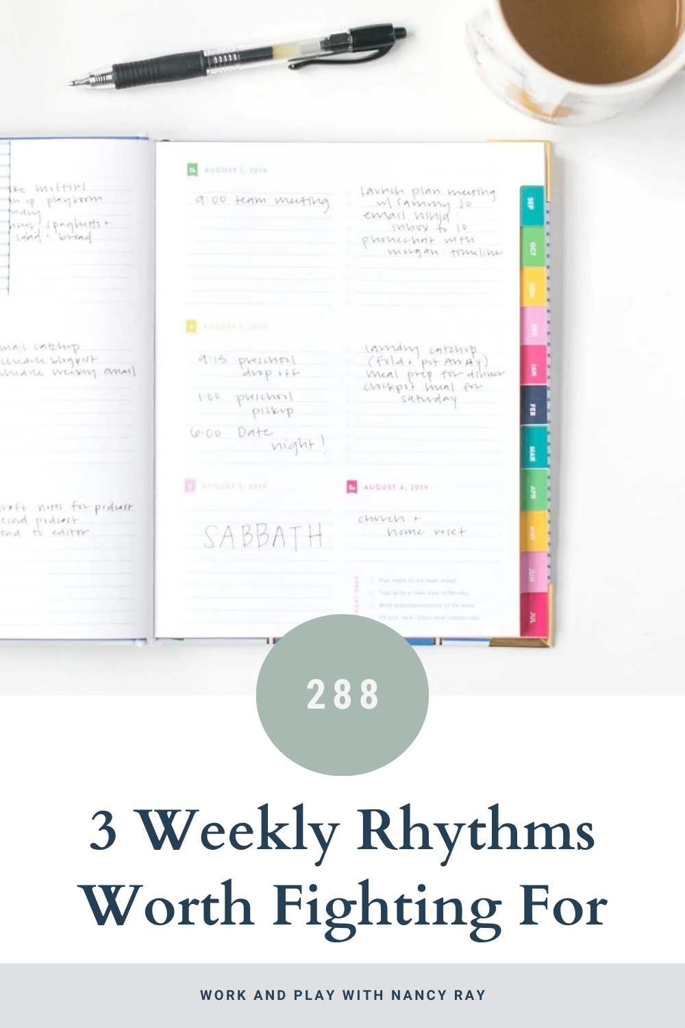 Today I am going to talk about things that I’m really passionate about, which are three rhythms that I cannot do without every single week. Weekly planning, weekly wrap up, and a Sabbath.